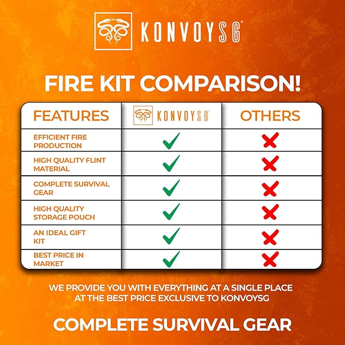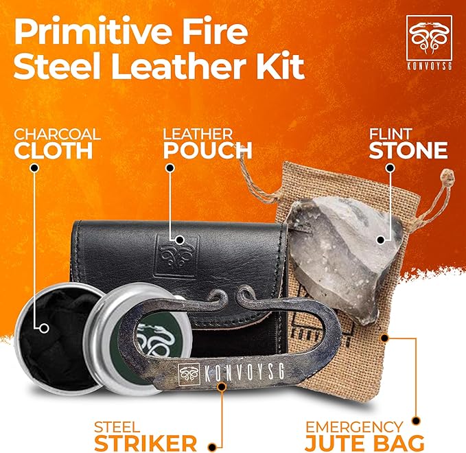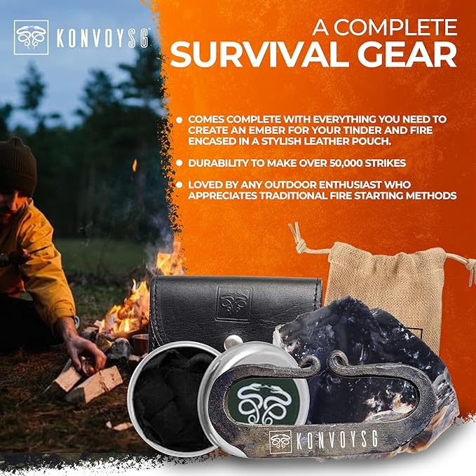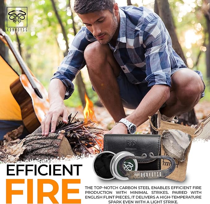 - Flint & Steel Legacy: Ignite the wilderness with KonvoySG's hand-forged carbon steel striker and English flint stone, mastering traditional firecraft like a pro.