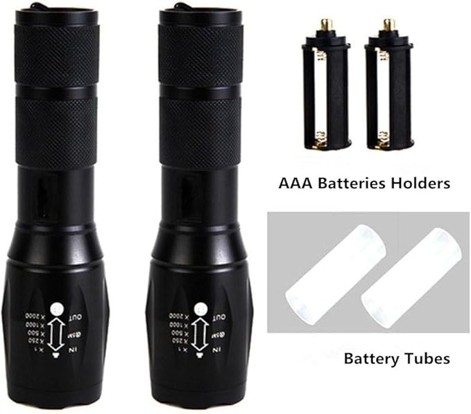 - What You Will Get: 2 x LED Flashlights, 2 x Battery Tubes, 2 x AAA Battery Holders (Batteries are not Included), and 2 x Lanyards (Hand Straps).