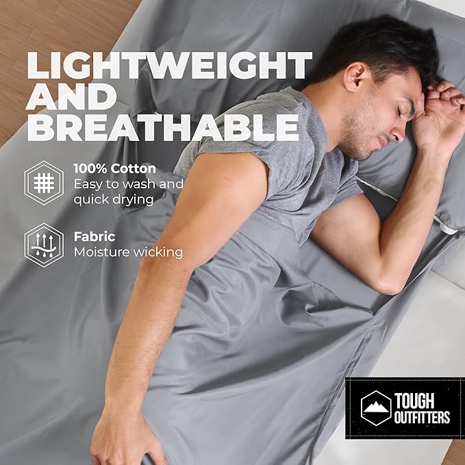 - FIT FOR ROYALTY (OR ANYONE UP TO 6'6): Our Tough travel sheet sleep sack is generously sized, so no matter your height, you'll have plenty of room to stretch out and get comfy. The single liners measure 37" in width and 85" in length, while the double is a whopping 74" in length.