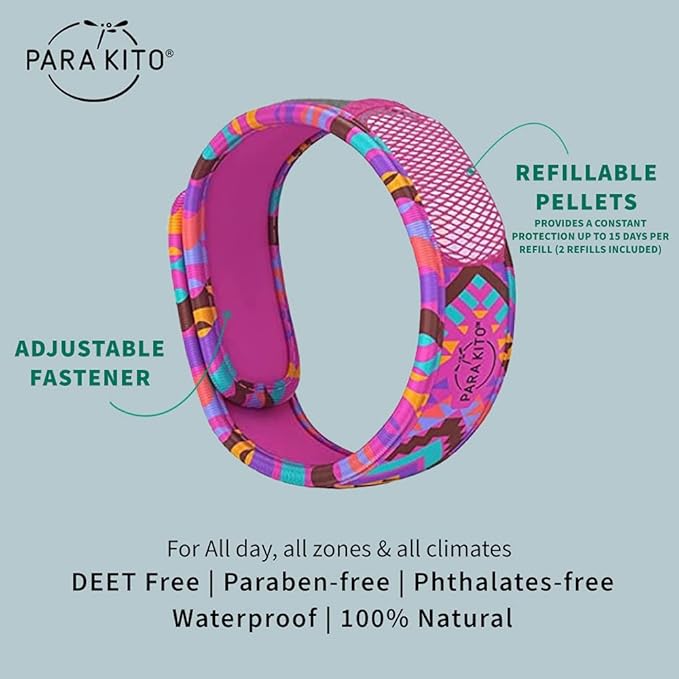 - WATERPROOF & REFILLABLE: All day, all zones, all climates! Whether you are strolling through a forest or snoozing on a tanning bed, PARA’KITO wristbands provide constant protection for 15 days per refillable pellet (2 pellets Included).