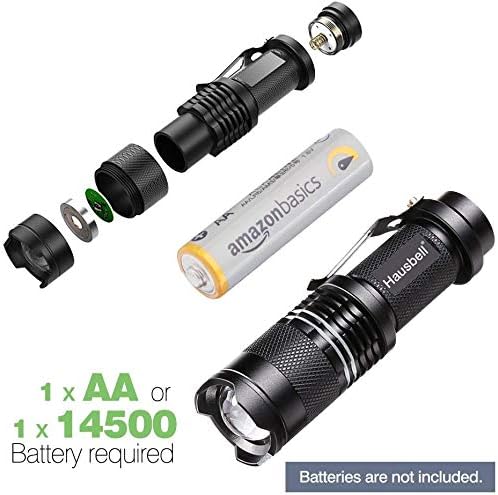- WHAT YOU GET: Let's join the HAUSBELL family with confidence! Package Includes eight Flashlights. The torch light can be powered by one AA battery (Not Included), you will need to purchase the battery separately. Please do make sure you place the spring directly in the middle of the battery when install it. For any unpleasant order, refund or replacement are available