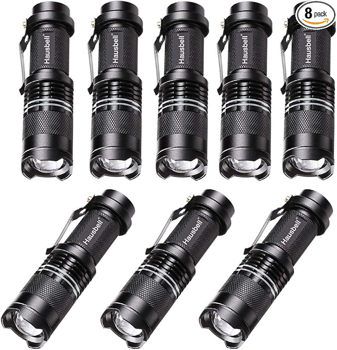 HAUSBELL Flashlights, Handheld Flashlights, Upgraded 7W Mini LED Flashlights, Tactical Flashlights High Lumens, Zoomable 3 Modes Flash Light for Kids Indoor Outdoor Hiking Camping, 8 Pack