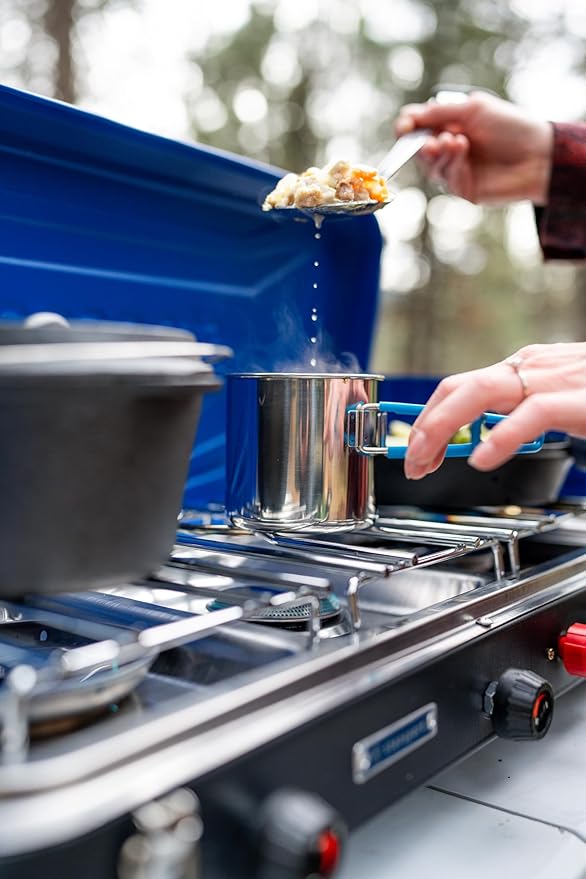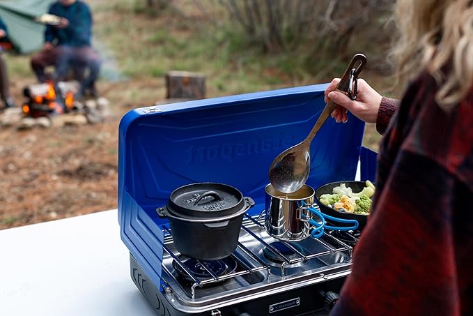 - FEED THE MASSES: Cooking for large groups just got easier with this outdoor camp stove - it features 2 large and one smaller burner sure to make you a happy camper!