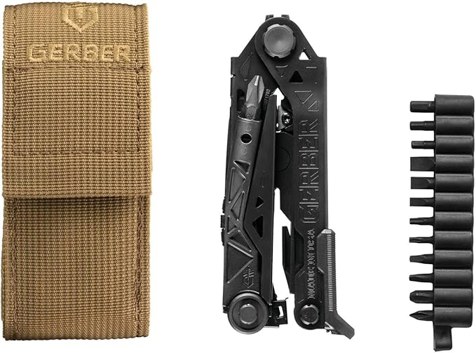 - Gerber Gear Center-Drive Multitool: This highly versatile 16-in-1 survival tool includes a 12-piece standard bit set and a sheath