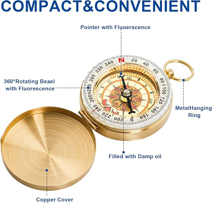 - Old Fashion Compass: Made of copper, acrylic mirror surface. Retro nostalgic style design, senior gold-plated metal shell, mirror polished surface.