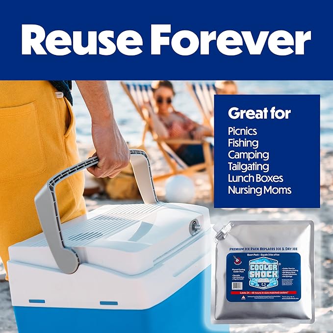 Cooler Shock Reusable Ice Packs for Cooler - Long Lasting Cold Freezer Packs for Coolers and Lunch Boxes - Cooler Ice Packs for Camping Gear, Fishing, Road Trips, Beach Must Haves
