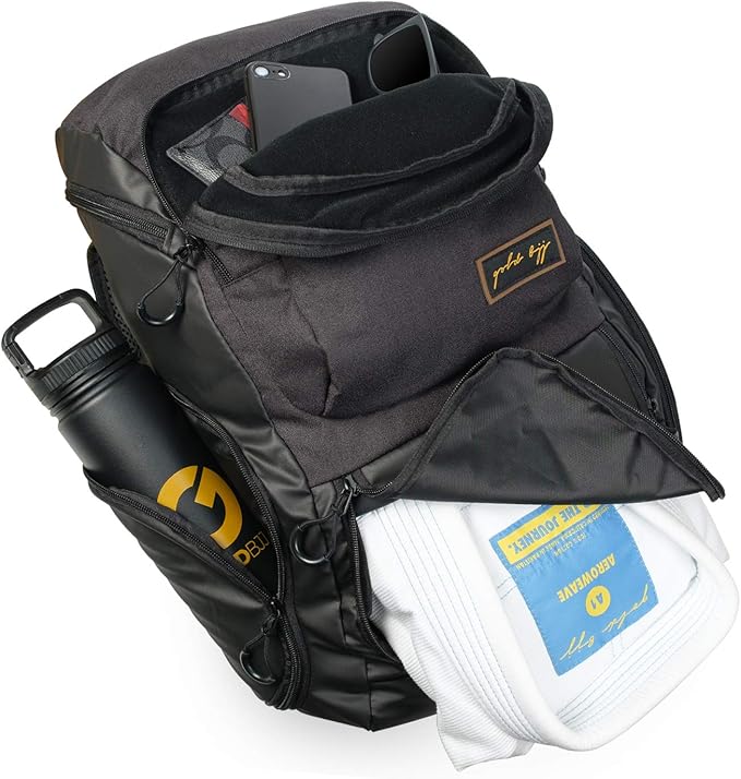 - Organize Your Gear: This backpack has plenty of room for one set of training gear and clean clothes. Looking to carry more than 1 gi or a kitchen sink? Search for our Gold BJJ Duffle Bag.