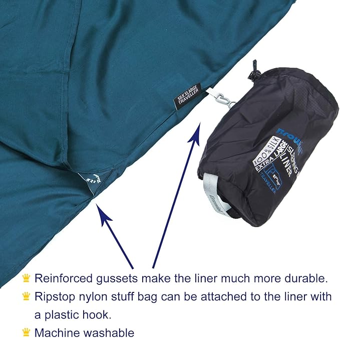 - Silk liner keeps your sleeping bag clean and It’s also ideal for hotels, hostels, travel, camping and sleeping cars. Question again: Is it real silk??? BROWINT: Yes, it is!