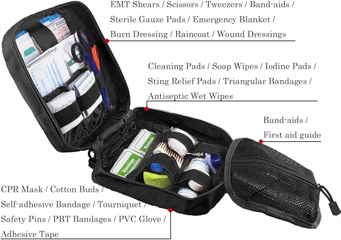 - ★MOLLE SYSTEM UPDATED: Molle system on the back can attach the kit to any MOLLE compatible gears and also a bicycle, motorcycle, backpack, belt, vehicle seat etc, easy to attach and unfasten.