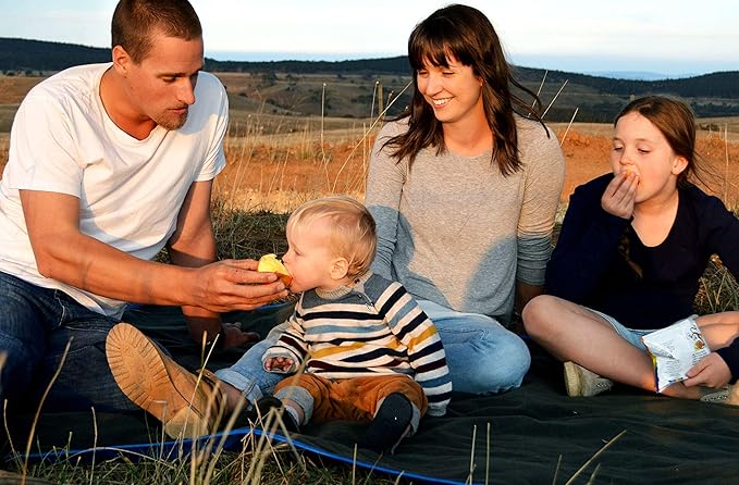 - WHY OUR BLANKET ultrasonically quilted, the 2 layers can’t slide on each other, maximizing safety; at 3.1 lb of quality materials it is THICKER THAN THE OTHERS in this price range; a special double coating has been sprayed in between the 2 layers to stop water penetrating from the blue side, making it waterproof in most situations; a secret zip storage pocket for the stuff sack and it is backed by our lifetime warranty; if your unhappy with your blanket, EVER, send in for replacement
