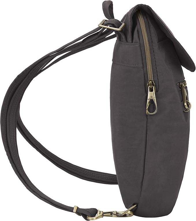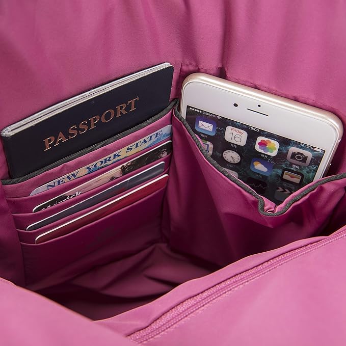 - Anti-Theft features include slash & cut resistant straps and panels, locking zippers, RFID protected card slots and Passport pocket