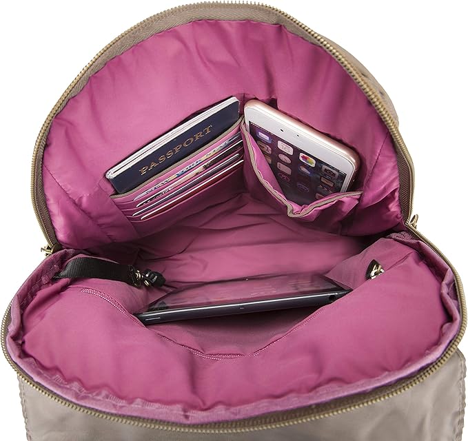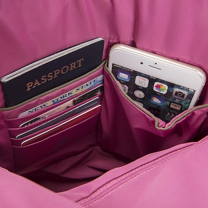 - Anti-Theft features include slash & cut resistant straps and panels, locking zippers, RFID protected card slots and Passport pocket