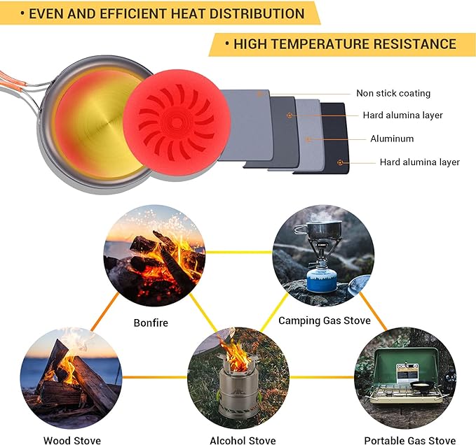 - Multi-Ways for Cooking:The cookware set can be hung over the open fire. Perfect for camping, hiking, backpacking, picnic, etc. Since we do not use chemical layers, the ability of non-stick is limited. For some easily sticky ingredients, please try not to cook directly without oil.