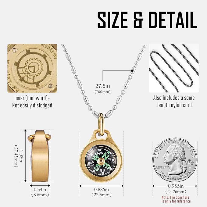 - Compact & Versatile Carry: About the size of a nickel; fits in any pocket or survival pouch; includes a necklace for versatile use; wear as a pendant; hang on a backpack; convert to a custom keychain; ultra-portable for everyday or outdoor use