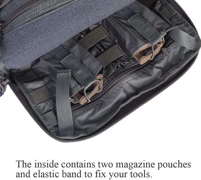 - MULTI-FUNCTIONAL: It works great as a fast access chest pack for often used items when backpacking.The mesh internal divider holder can hold 2 pcs 5.56 mags,and other accessories.With front molle system allow for attaching it to MOLLE system. It can be used as harness chest pack, fishing chest pouch, running chest bag.