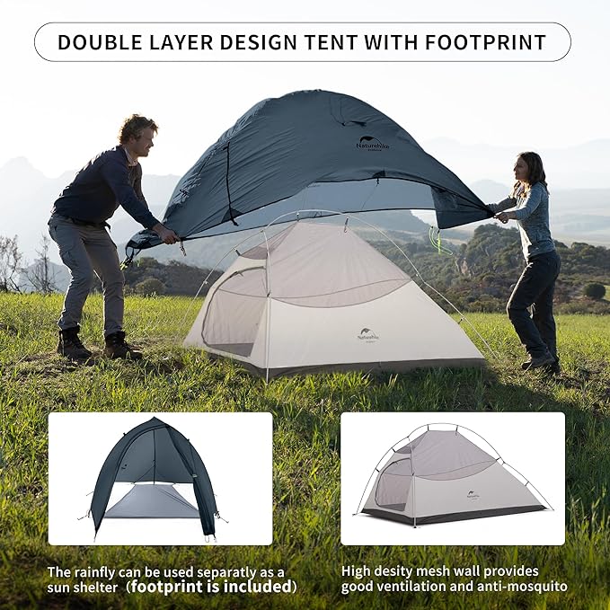 Naturehike Cloud-Up 2 Person Tent Lightweight Backpacking Tent with Footprint - Free Standing Ultralight Camping Hiking Backpack Tents Two Person Tent