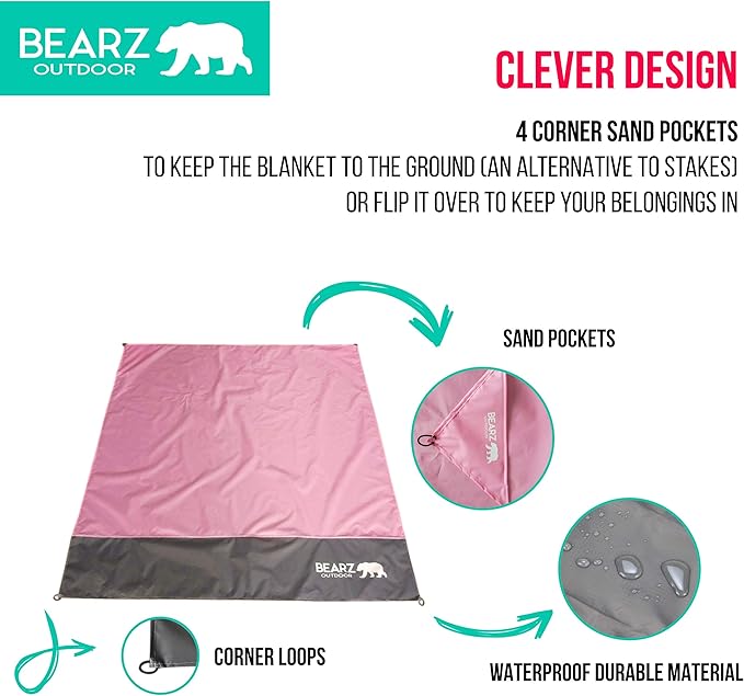 - Why BEARZ Outdoor – We care about our products, and most of all, we care about our customers. Every little detail has been thought out to make these waterproof, lightweight, and durable outdoor blankets from their vibrant colors and intricate stitching to the hidden corner pockets and other unique added accessories. If you ever have any questions at all, contact us and we promise to take good care of you!