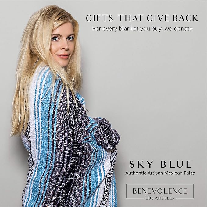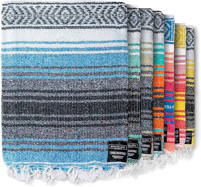 Benevolence LA Authentic Handwoven Mexican Blanket, Yoga Blanket - Perfect Outdoor Picnic Blanket, Beach Blanket, Camping Blanket, Equestrian Saddle Blanket, Serape Blanket 50x70 inches - 1 Blanket