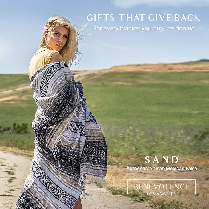 Benevolence LA Authentic Handwoven Mexican Blanket, Yoga Blanket - Perfect Outdoor Picnic Blanket, Beach Blanket, Camping Blanket, Equestrian Saddle Blanket, Serape Blanket 50x70 inches - 1 Blanket