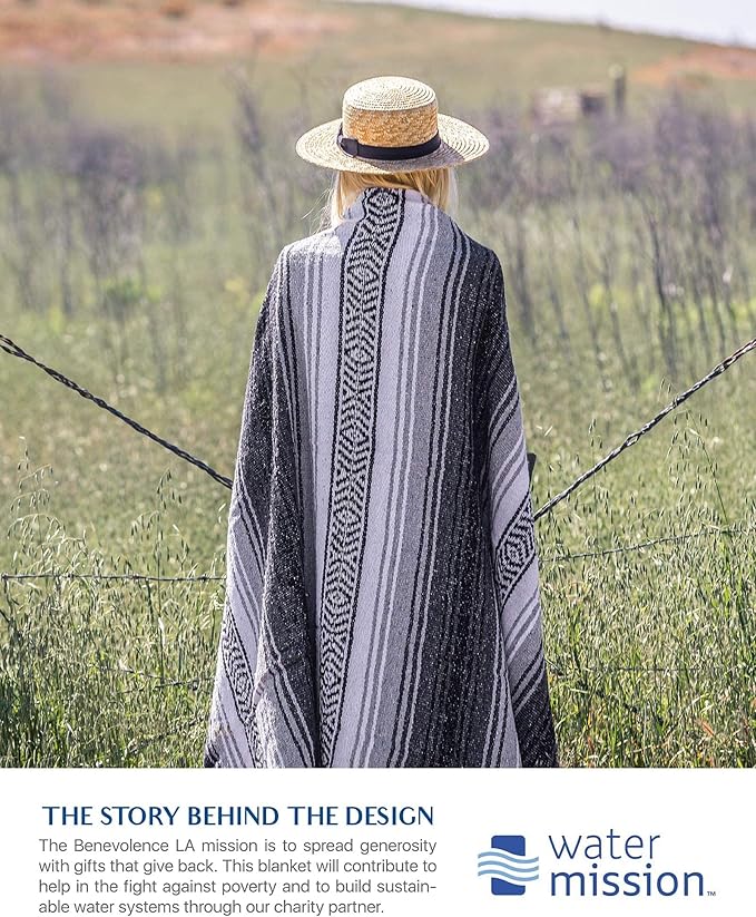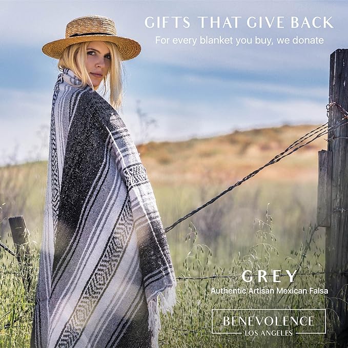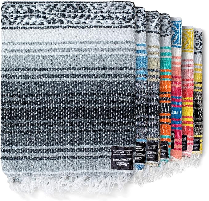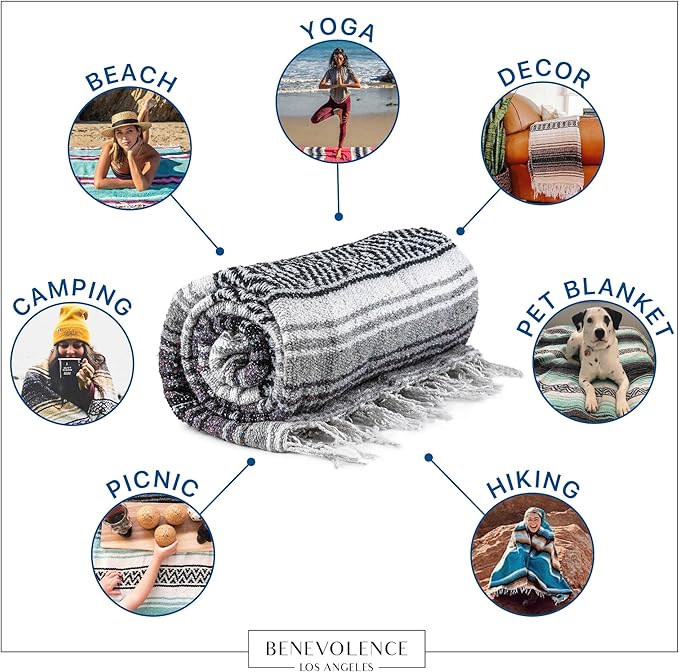 Benevolence LA Authentic Handwoven Mexican Blanket, Yoga Blanket - Perfect Outdoor Picnic Blanket, Beach Blanket, Camping Blanket, Equestrian Saddle Blanket, Serape Blanket 50x70 inches - 1 Blanket