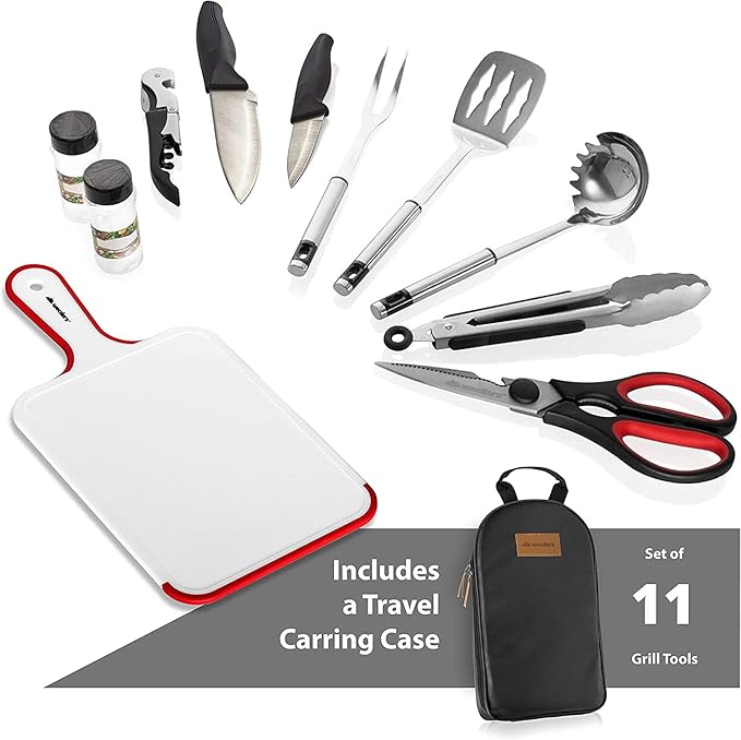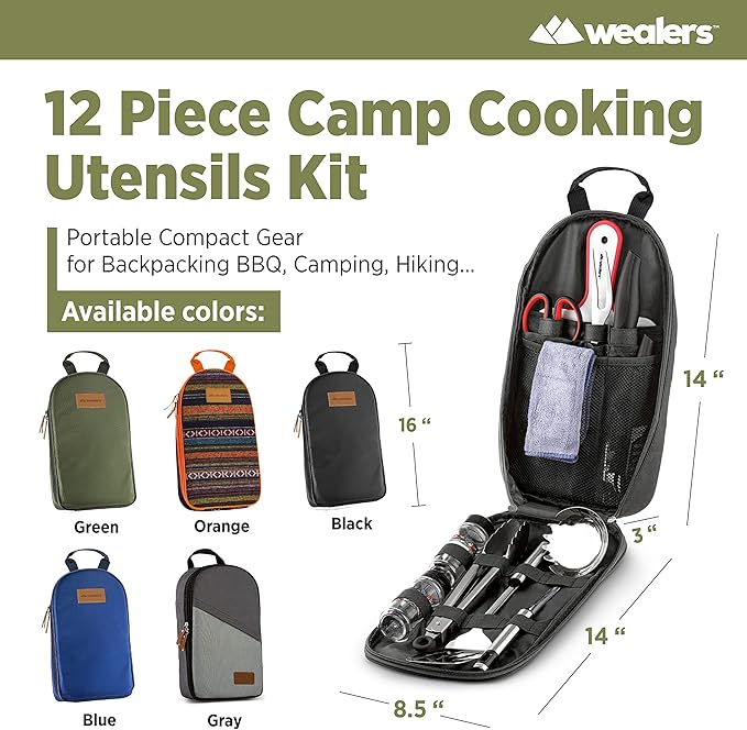 11 Piece Camp Kitchen Cooking Utensil Set Travel Organizer Grill Accessories Compact Gear for Backpacking BBQ Camping Hiking and Travel Black