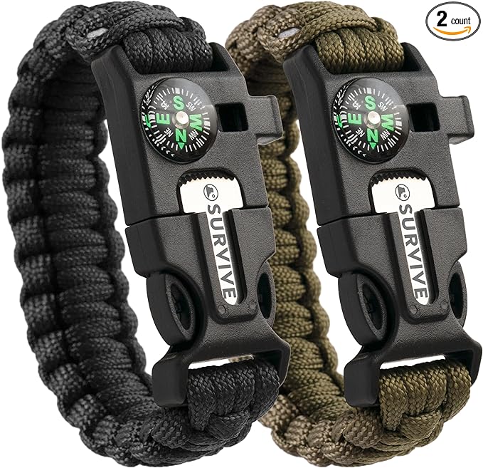 - PERFECT GIFT for yourself and loved ones for camping, hiking or hunting. Help your family and friends be prepared to survive in emergency situations. Teach your kids important survival skills with these essential survival items included with this bracelet.