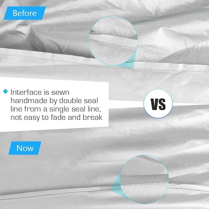 - ★THICKENED AND HIGHLY FADE-RESISTANT MATERIAL -- The UPGRADED kayak cover adopts 300D Thicken and Durable oxford Taffeta material with silky hand felt and glossy surface with silver paint material back inside, is more fadeless, UV resistant, waterproof and ripstop