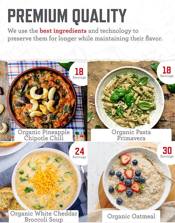 - GOURMET TASTE WITH ORGANIC INGREDIENTSDiscover the comforting taste of real, organic ingredients in every meal. ReadyWise elevates emergency food with gourmet-quality flavors, offering up to 1,800 calories per serving to keep your spirits high in trying times.