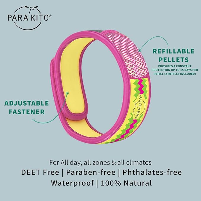 - WATERPROOF & REFILLABLE: All day, all zones, all climates! Whether you are strolling through a forest or snoozing on a tanning bed, PARA’KITO wristbands provide constant protection for 15 days per refillable pellet (2 pellets Included).