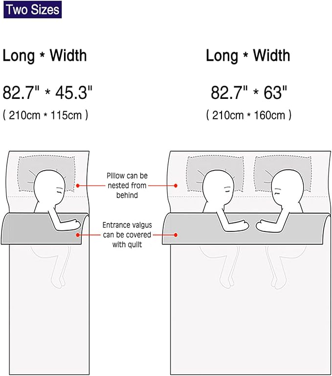 - 【Material & 3 Size of Sleeping Bag Liners】: polyester fiber, breathable, will add a few extra degrees during chilly nights, no pilling or fade, you will feel very comfortable and soft, great even for sensitive skin; two size available: 115 X 210cm/83x45’’ for one person or 160 x 210cm/83x63’’ or 180x215cm/70.9x84.6’’ for two persons, great size even for tall people to stretch out legs. The opening length is 100cm/39’’ for you to get in