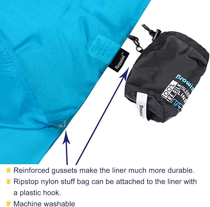 - Silk liner keeps your sleeping bag clean and It’s also ideal for hotels, hostels, travel, camping and sleeping cars. <b>Question again: Is it real silk??? BROWINT: Yes, it is!