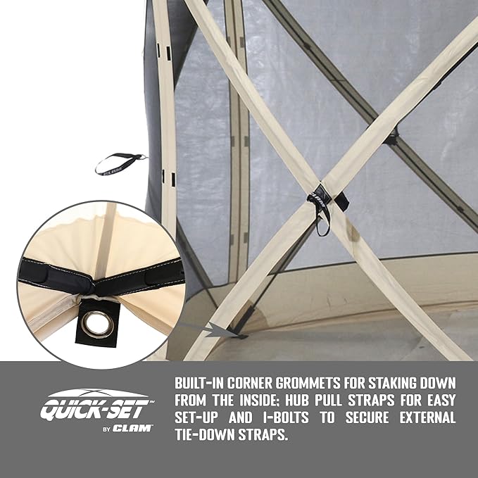 CLAM Pop Up Screen Tent, Outdoor Camping Gazebo Canopy, Escape, 11.5', Tan