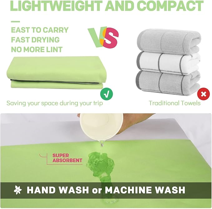 - MULTI-FUCNTIONAL QUICK DRY TOWEL & GIFT IDEA: Lightweight and compact microfiber towel for travel is super versatile for any situation. Such as backpacking, travel, camping, hiking, swimming, yoga, golf, gym, fitness, exercise. Perfect for covers your sun lounger, deck chair or camping undera beach umbrella&sun shelter. The travel towel also looks really fashionable and sporty, which makes it a great gift idea for your family and friends. Of course, if you have any problem, please contact us.