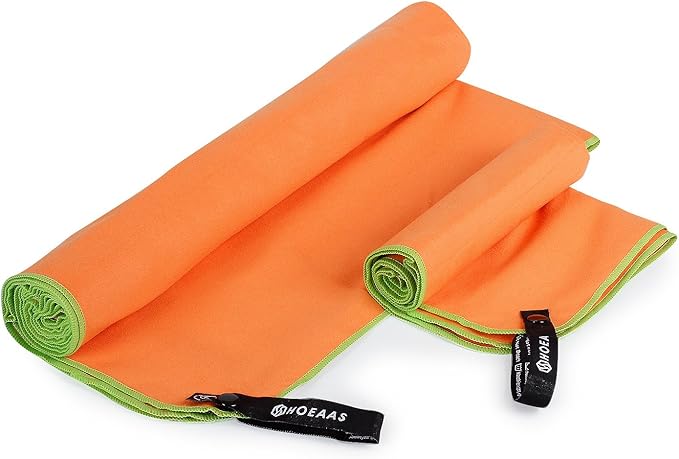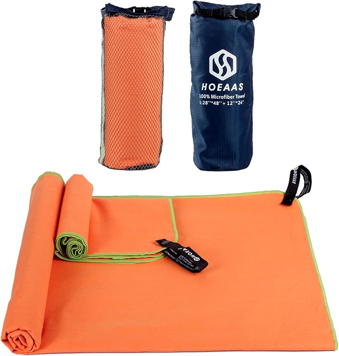 - SUPER ABSORBENT & QUICK DRYING: HOEAAS microfiber camping towel is made of soft and skin-friendly microfiber fabrics, which super absorbent and fast drying. Soaks up 5X its weight in water and dries nearly 10X faster than cotton towel, repeat use it a short time, no bad odors. So you never have to worry about your microfiber beach towels soiling or stinking up the rest of your gear. After dry your sweat or body water, Spread out or hang up the quick dry towel will be dry in minutes!
