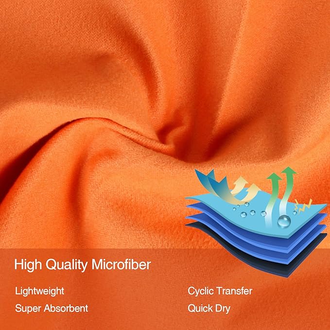 - MULTI-FUCNTIONAL QUICK DRY TOWEL & GIFT IDEA: Lightweight and compact microfiber towel for travel is super versatile for any situation. Such as backpacking, travel, camping, hiking, swimming, yoga, golf, gym, fitness, exercise. Perfect for covers your sun lounger, deck chair or camping undera beach umbrella&sun shelter. The travel towel also looks really fashionable and sporty, which makes it a great gift idea for your family and friends. Of course, if you have any problem, please contact us.
