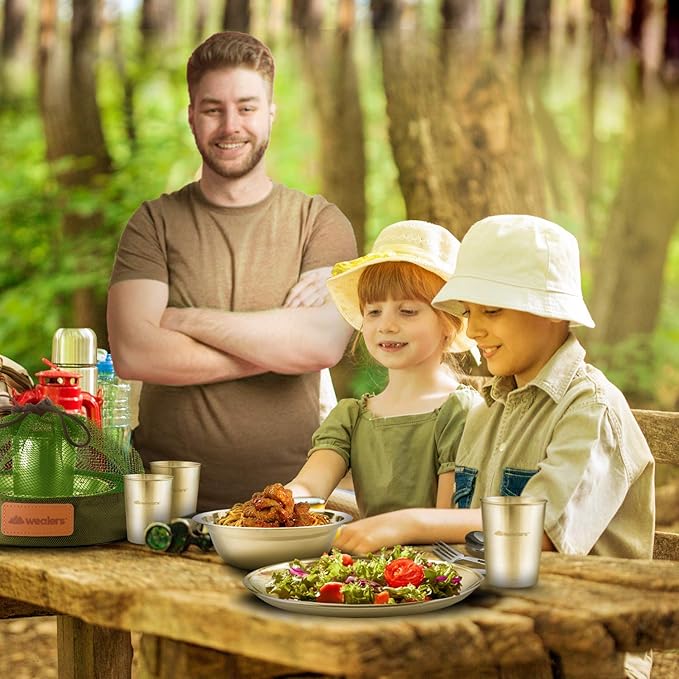 - STAINLESS STEEL MESSWARE KIT – Because of the high quality construction of this set, your food will not pick up any of the toxins picked up from plastic dish sets. Each of the Wealers Outdoors Stainless Steel mess kit is made from premium food-grade stainless steel which means BPA-FREE and NO TOXINS while using these dishes.