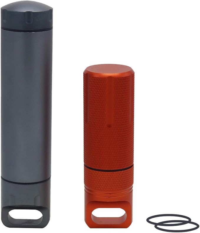 HRX Package Waterproof Outdoor EDC Survival Container Capsule, Airtight Aluminum Pill Bottle Organizer, Match Seal Storage Case, Camping Essentials Emergency Tool