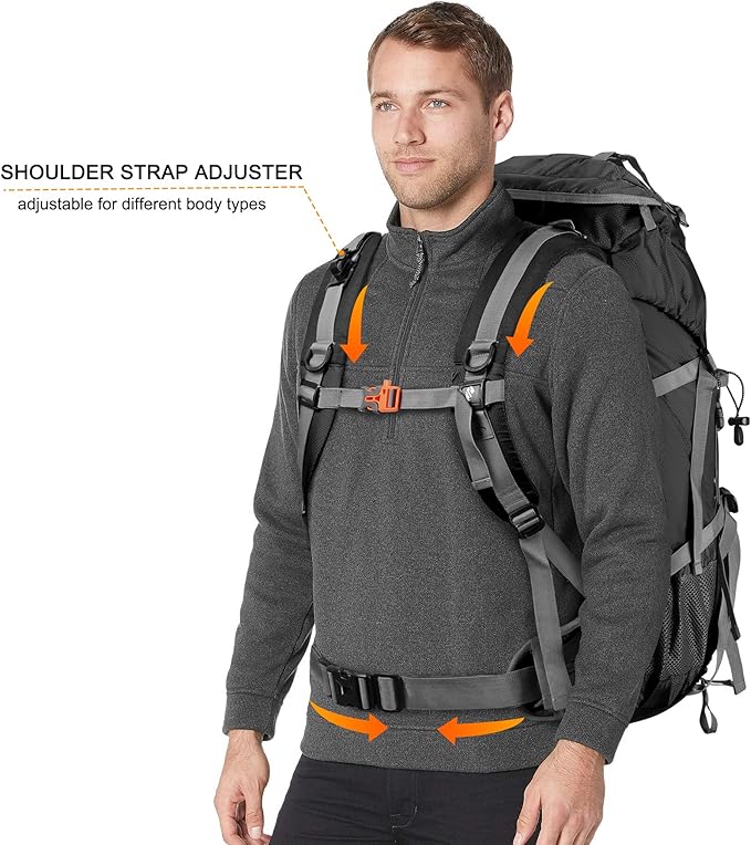 - No Internal Frame - This lightweight & comfortable hiker backpack is specially designed for outdoor enthusiasts. Breathable mesh shoulder straps with plentiful sponge padding help relieve the stress from your shoulder. Widened and thickened S-type shoulder straps and high elastic breathable back support for best ventilation and easing burden, gives you more comfortable experience.