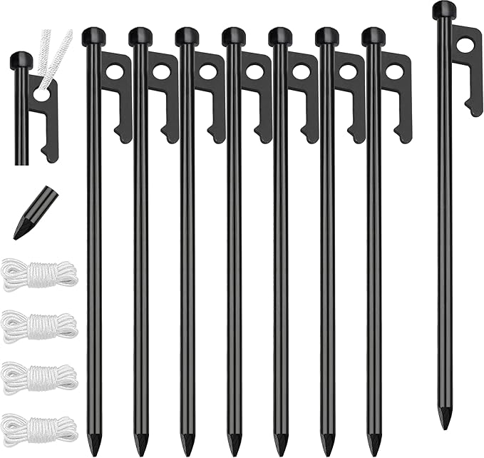 - Versatile Use: Our camping stakes are versatile and ideal for securing tents, awnings, canopies, tarps, and outdoor equipment during camping, hiking, and other outdoor adventures.With a pack of 8 camping stakes , you can use them not only for your tent but also for other purposes such as securing a rainfly, guylines, or even setting up a tarp shelter.