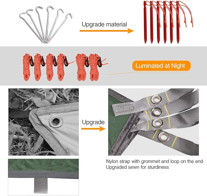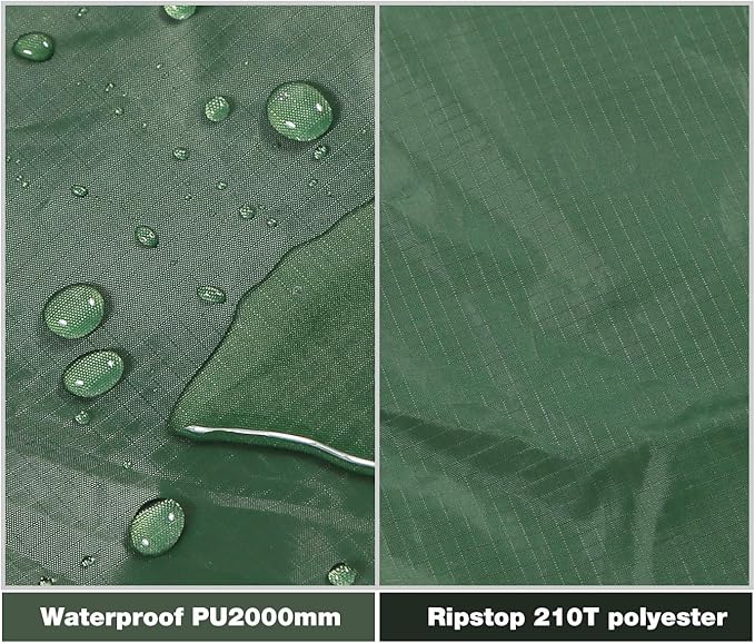 - WATERPROOF: The waterproof tent tarp is made of 210T polyester ripstop PU2000mm
