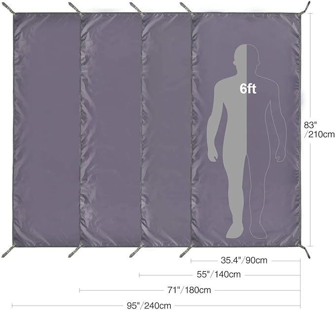 - LARGE: 83''x55''/210cmx140cm, perfect for 1-2 person. You can place the camp ground cloth under your tent to provide an extra moisture layer.