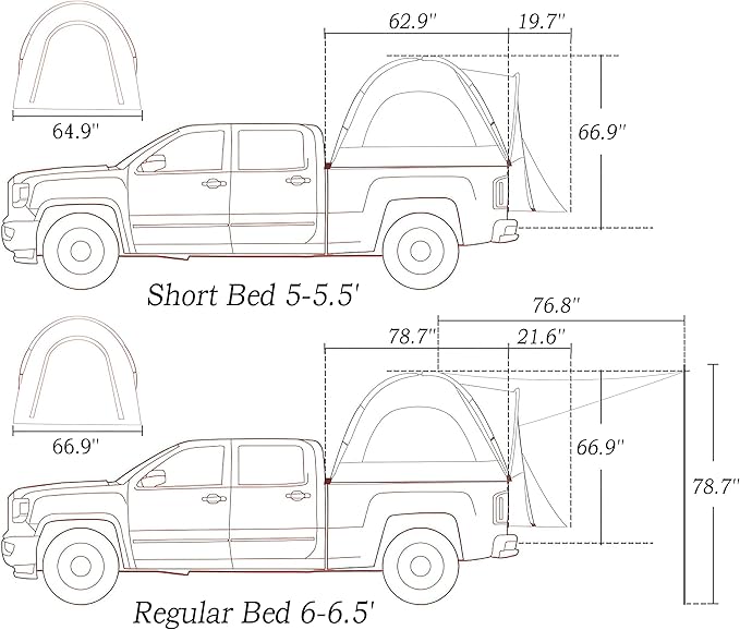 - Upgraded Fabric Quality:The truck tent was upgraded with stronger fabric quality,anti-ripped and well waterproofed,durable for long life use and great for protecting from rain and bad weather.The full tent floor keeps you clean from your truck and dry from the elements.