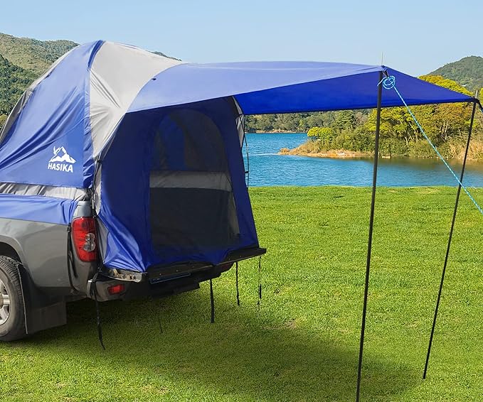 - Double Layer Protected: This truck tent comes with a well-constructed rainfly, it provides ultimate weather protection.If you're looking to do a quick camping trip,Hasika truck tent is the best choice.Any issue about setting up ,poles ,accessories,just feel fr ee to contact us ,we will make you happy.