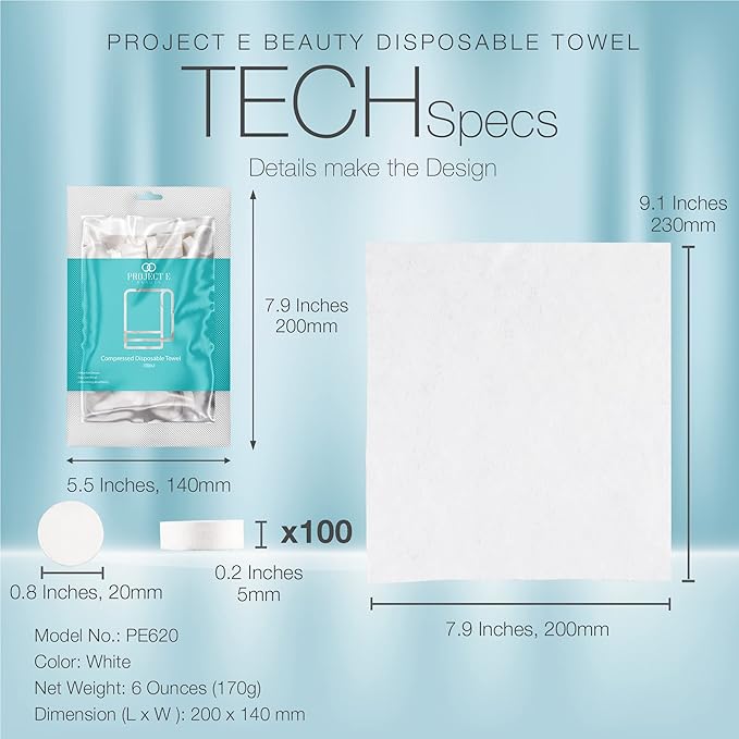 - ✔ PORTABLE TOWELS - Have wipes handy all the time with Project E Beauty's compressed cotton towels made of 100% cotton. These are high quality cotton sheets that measure 9.1 x 7.9 inches each.