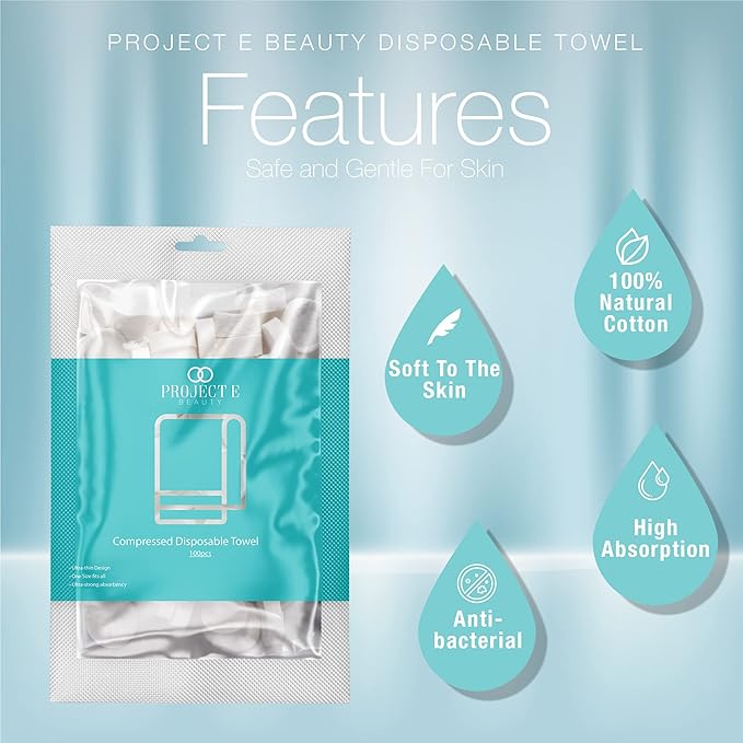 - ✔ 100% NATURAL COTTON - Only the best material for your skin. Project E Beauty’s disposable cotton towels are only made of natural cotton with a soft texture. It’s soft and gentle on skin and non-irritating. Simply soak to expand.