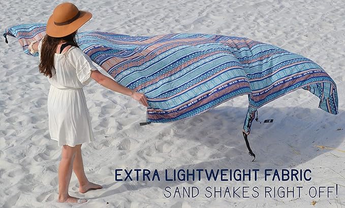 - Sand-Free & Quick-Drying: Experience the convenience of our sand-resistant beach blanket. Sand easily brushes off, and the water-resistant fabric dries quickly, so you can enjoy a hassle-free day at the beach or any outdoor adventure.