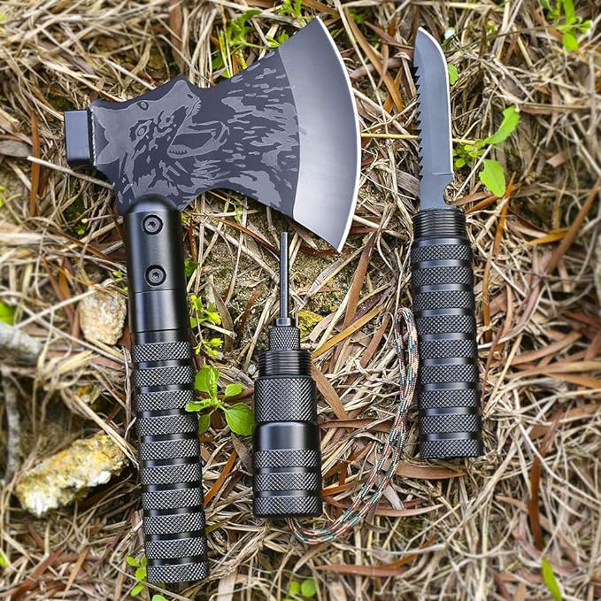 - COMPLETE SURVIVAL AXE KIT: This survival axe includes the functions of chop, cut, split, chip, trim, open, scale, make fire, hammer, whistle, compass, etc.