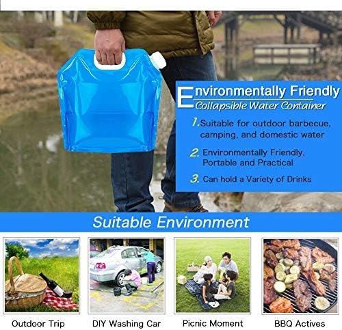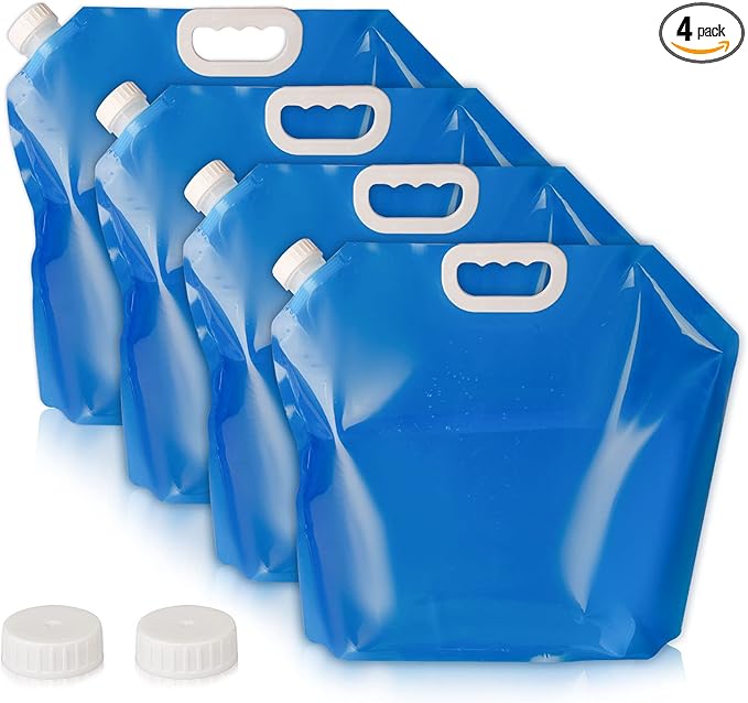 Hakkin Collapsible Water Tank Container 4 Pack 1.3 Gallon/5L, No-Leak Freezable Portable BPA Free Food Grade Plastic Storage Jug for Camping, Hiking, Travel, Emergency Survival Kit Bonus 2 Pcs Caps