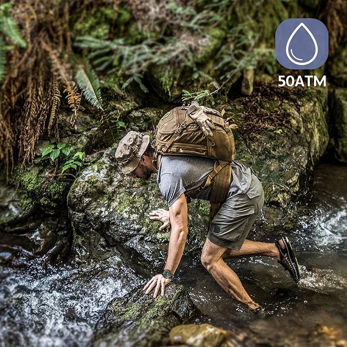 - 23-IN-1 Multi-Functional Survival Gear: This military watch contains all the tools you need for outdoor use, such as compass, whistle, igniter, SOS/flash, tools-fire starter, card pin and other survival gear. You don’t need to carry all survival tools in your backpack. It is suitable for various outdoor activities, such as traveling, camping, mountain climbing, hunting.