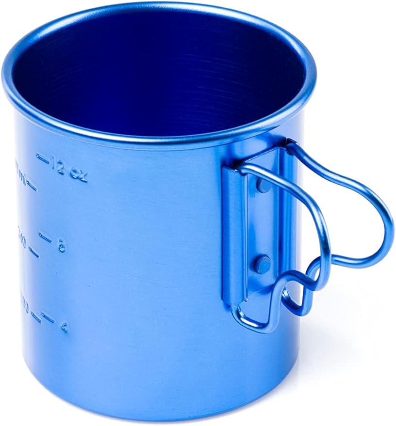 GSI Outdoors Bugaboo Cup - Ultralight Aluminum Camping & Backpacking Mug with Folding Handles - Hot Coffee, Tea, Soup (14oz)